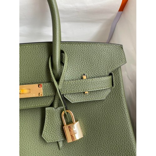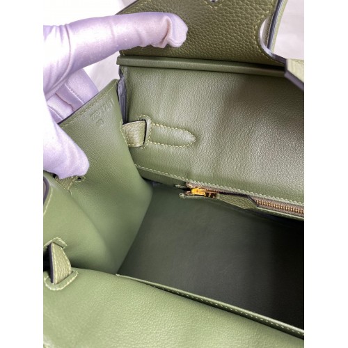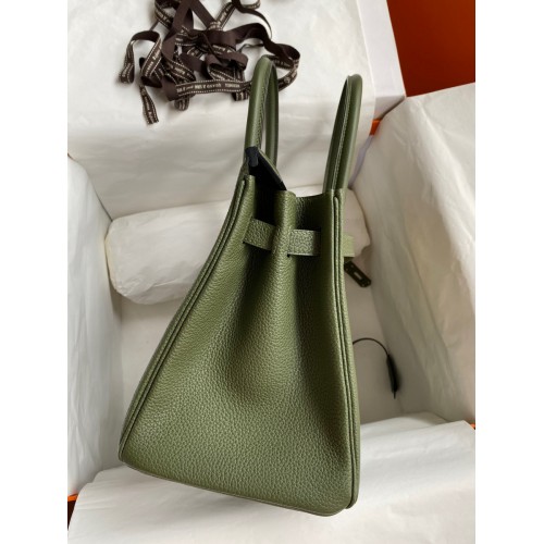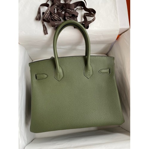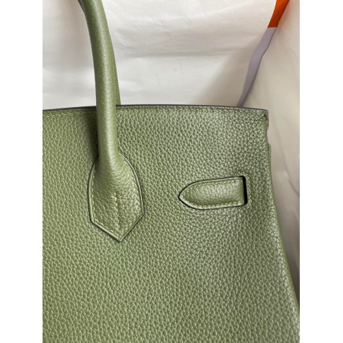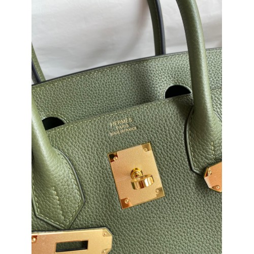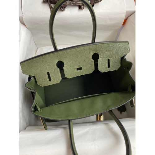 Hermes Birkin 30 Retourne Handmade Bag In Green Clemence Leather