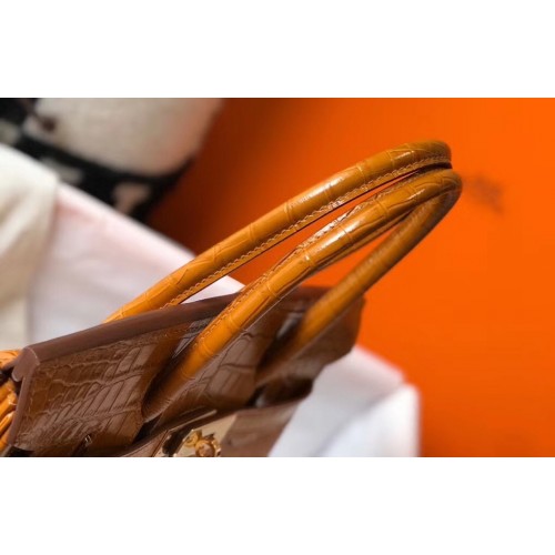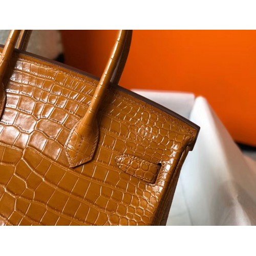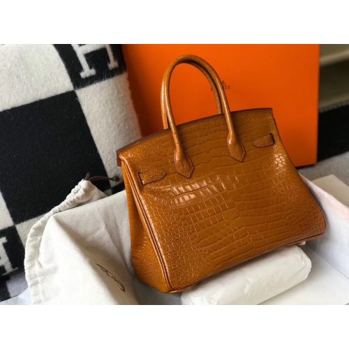 Hermes Birkin 30cm Bag In Gold Embossed Crocodile Leather