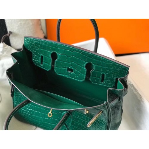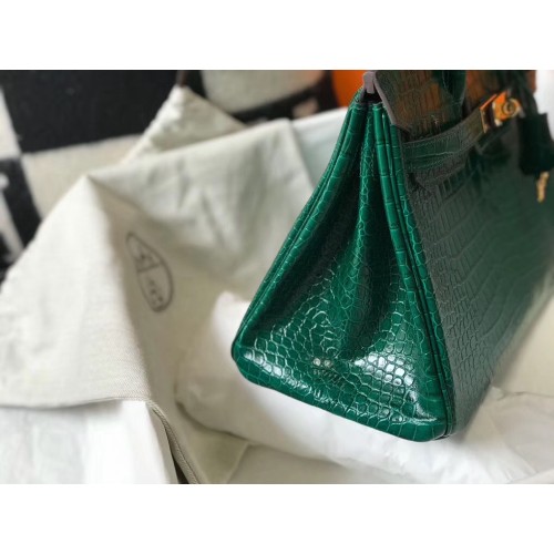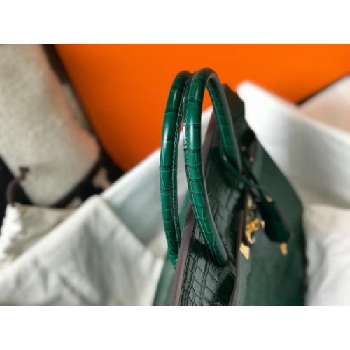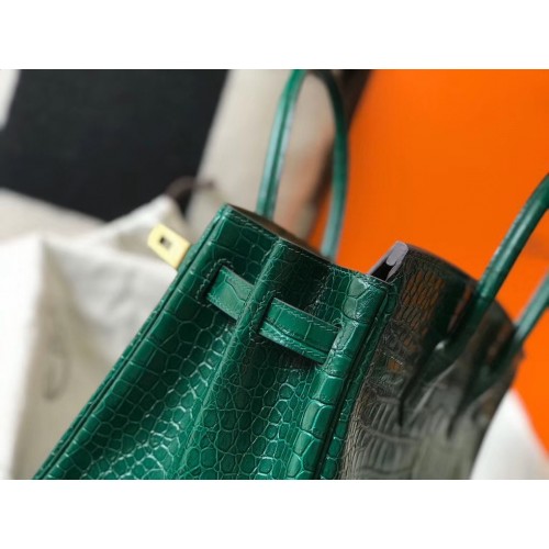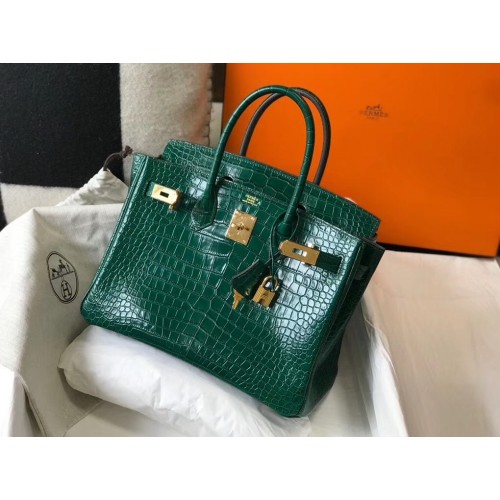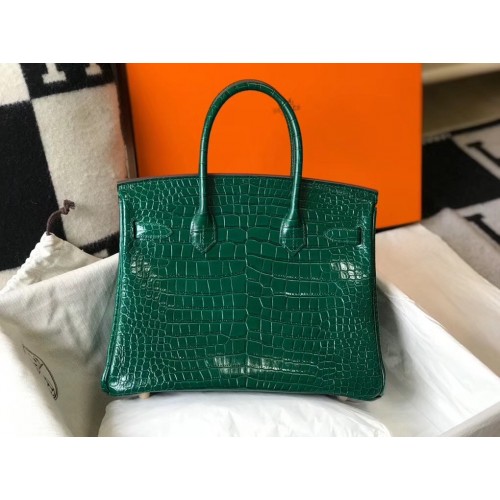 Hermes Birkin 30cm Bag In Green Embossed Crocodile Leather