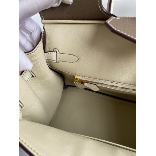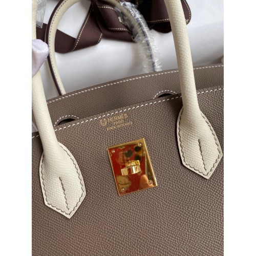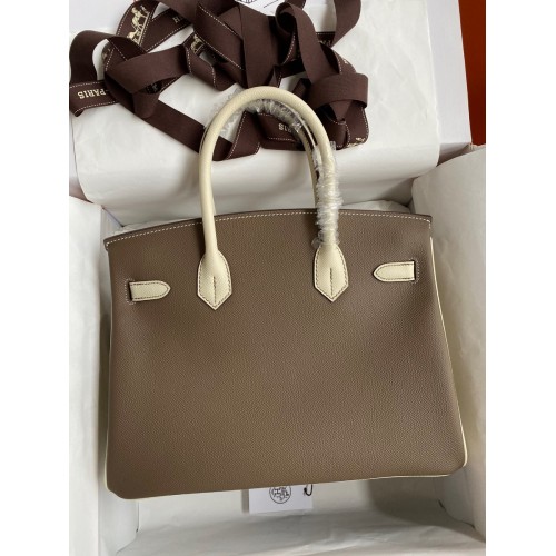 Hermes HSS Birkin 30 Bicolor Bag in Taupe and Craie Epsom Calfskin