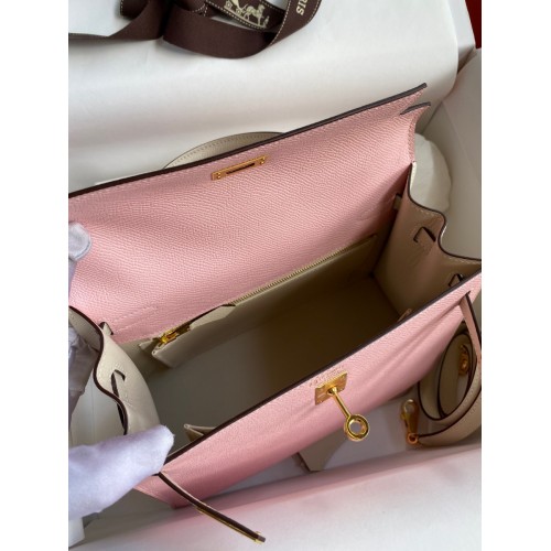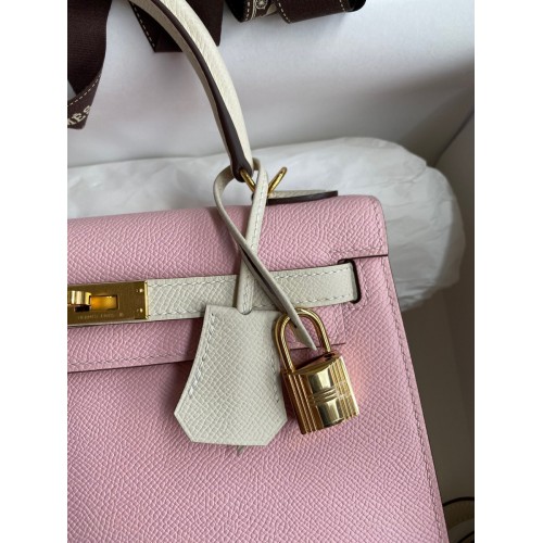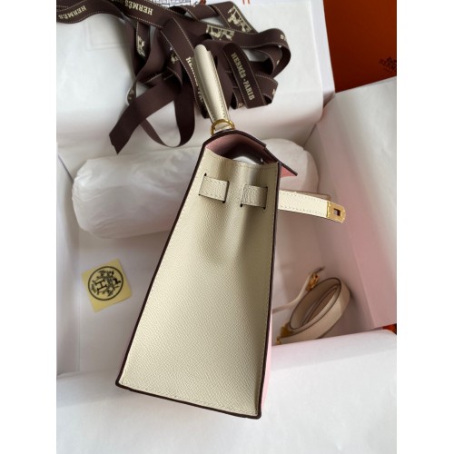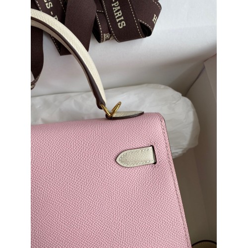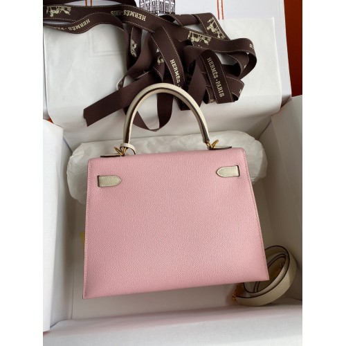 Hermes Kelly Sellier 25 Bicolor Bag in Rose Sakura and Craie Epsom Calfskin