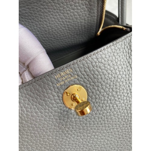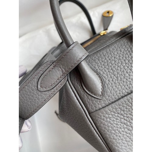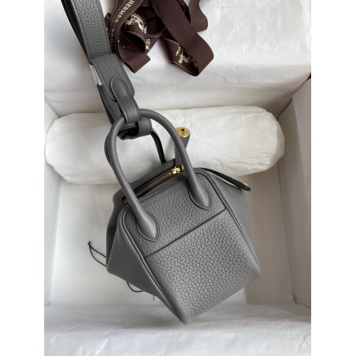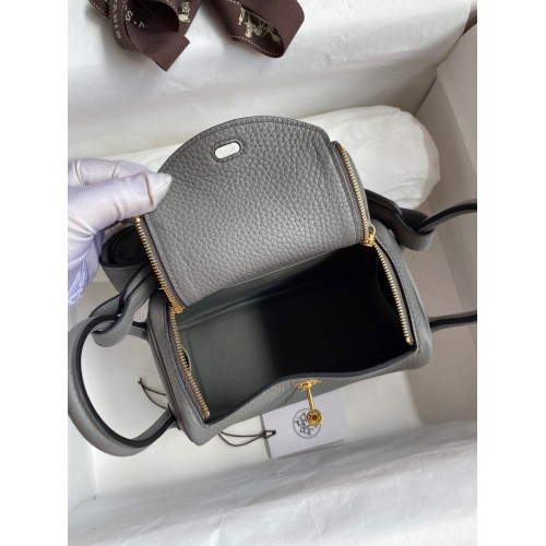 Hermes Mini Lindy Handmade Bag In Gris Meyer Clemence Leather