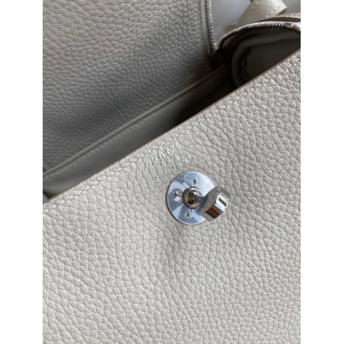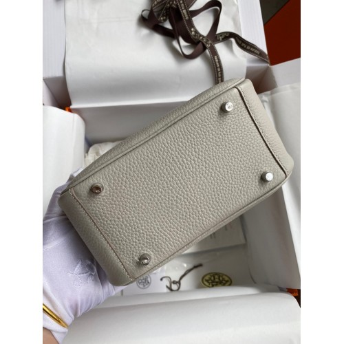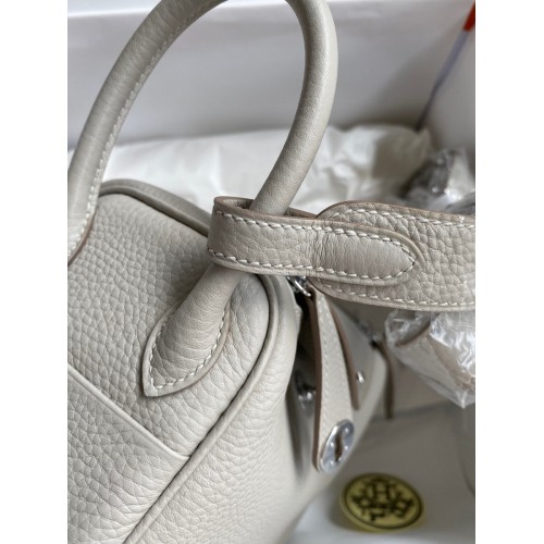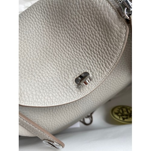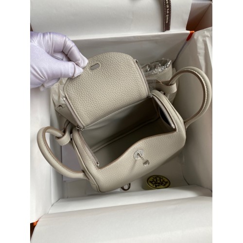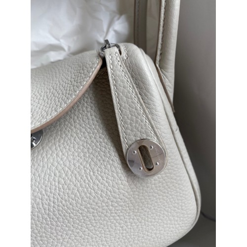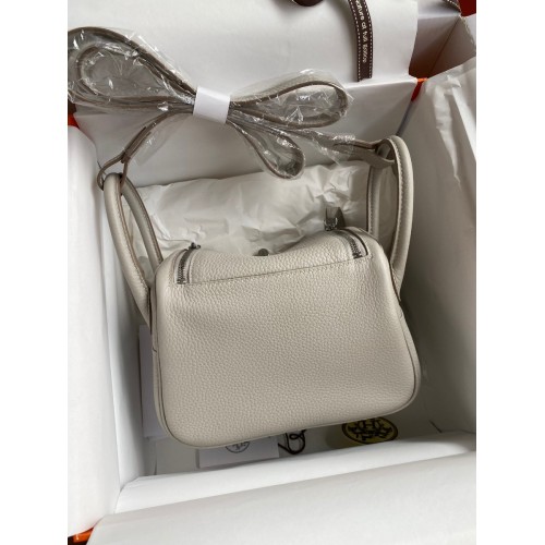 Hermes Mini Lindy Handmade Bag In Pearl Grey Clemence Leather