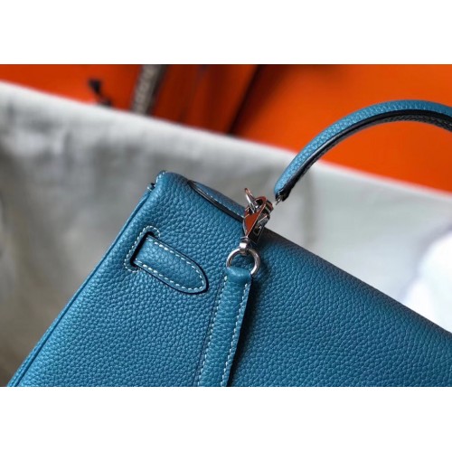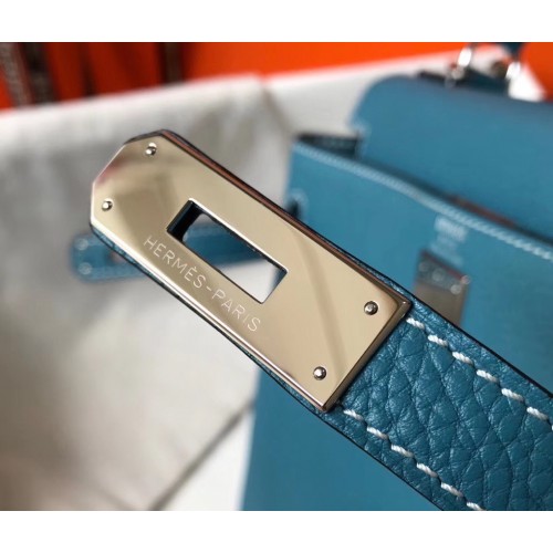 Hermes Kelly 25cm Retourne Bag In Blue Jean Clemence Leather