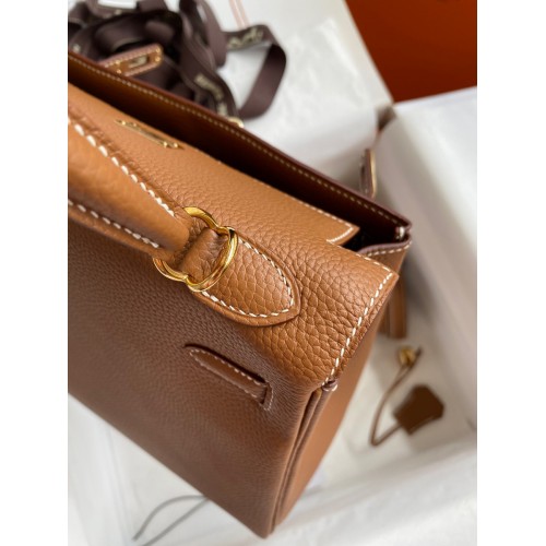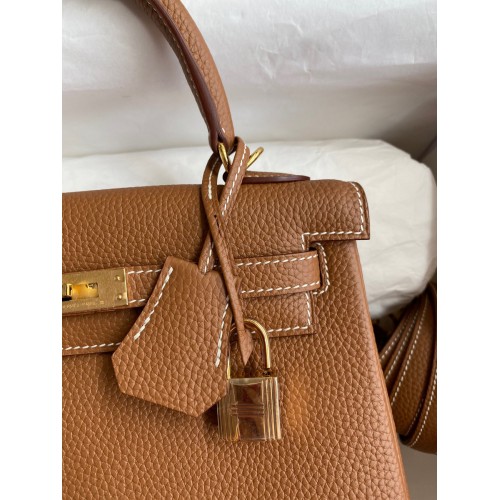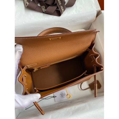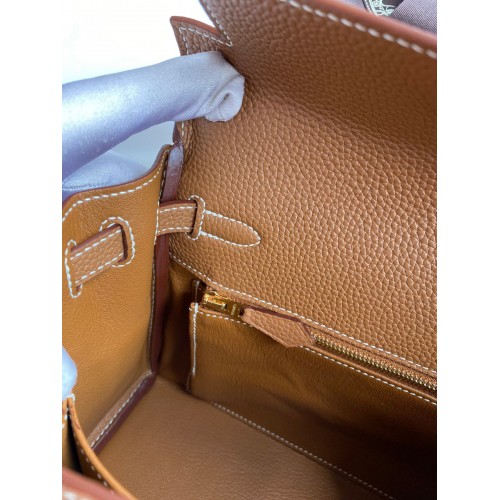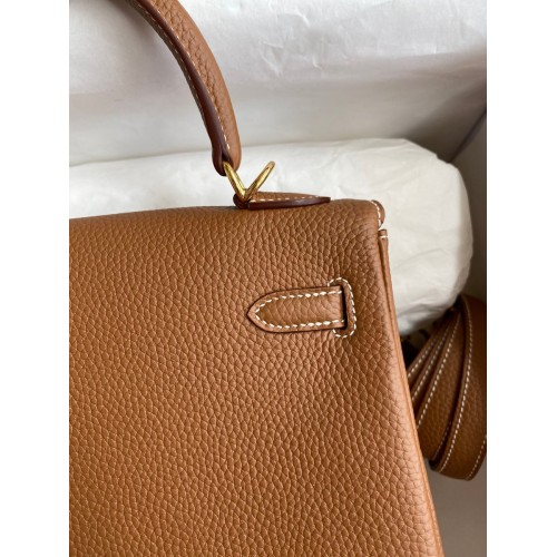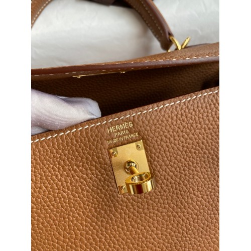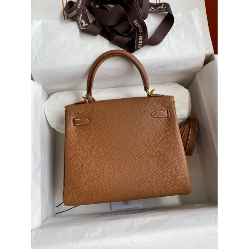 Hermes Kelly Retourne 25 Handmade Bag In Gold Clemence Leather
