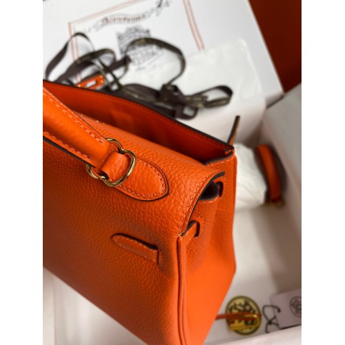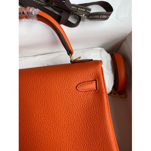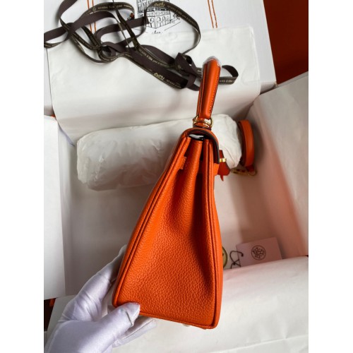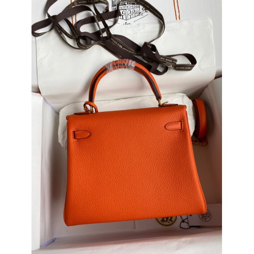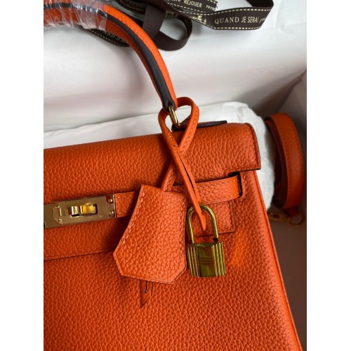 Hermes Kelly Retourne 25 Handmade Bag In Orange Clemence Leather