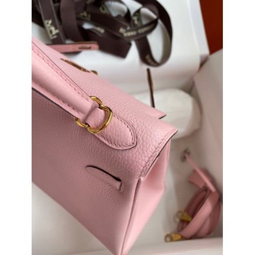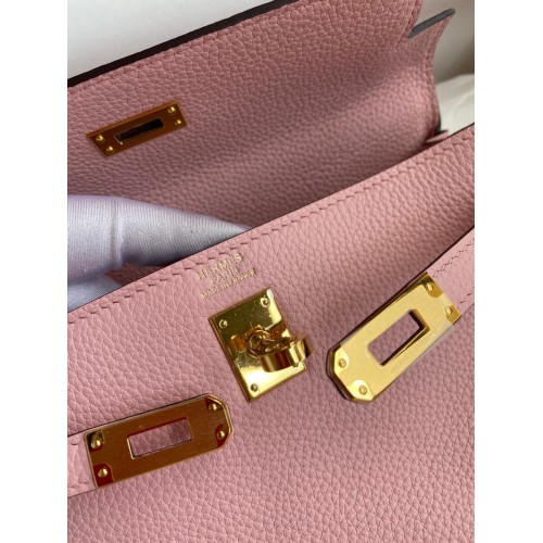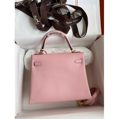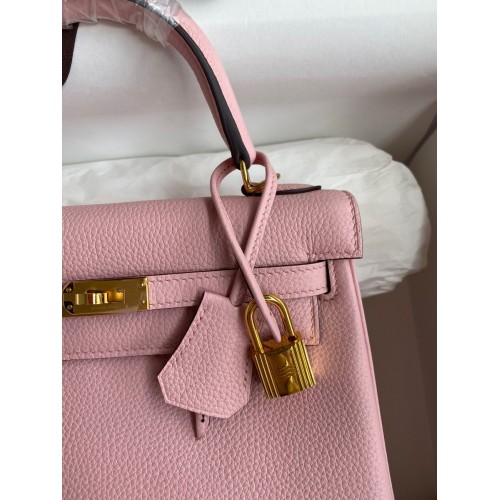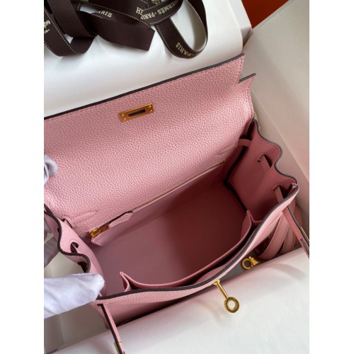 Hermes Kelly Retourne 25 Handmade Bag In Rose Sakura Clemence Leather