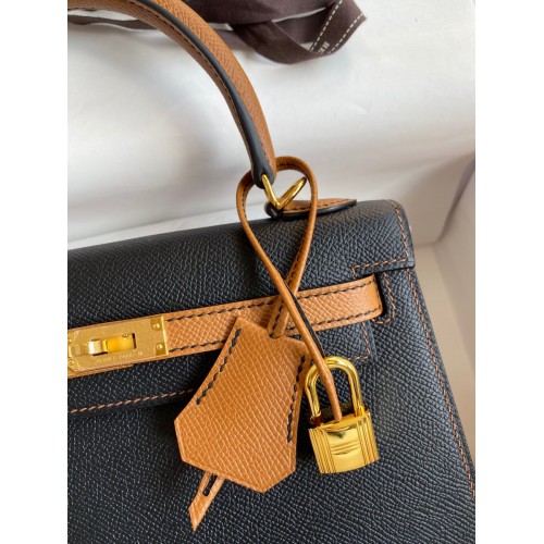 Hermes Kelly Sellier 25 Bicolor Bag in Black and Gold Epsom Calfskin