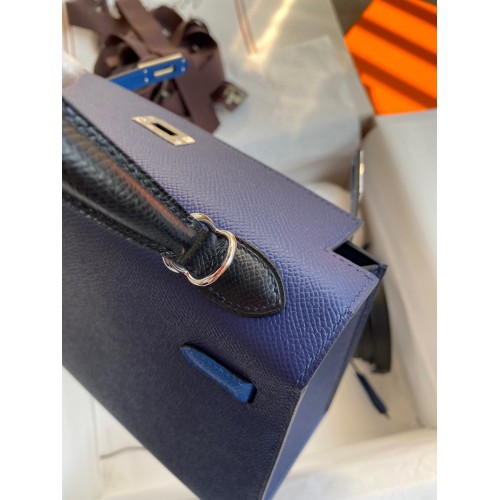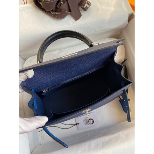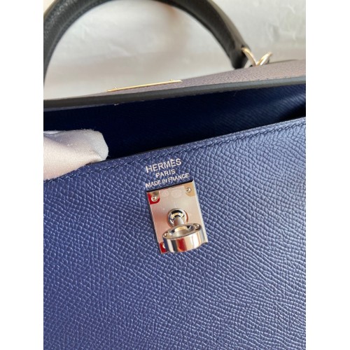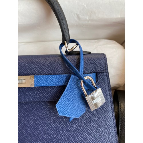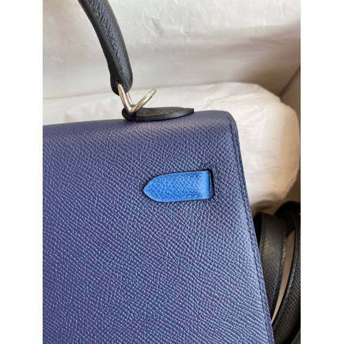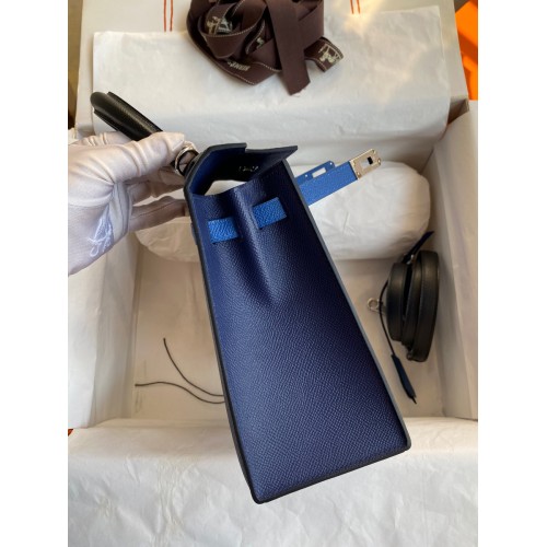 Hermes Kelly Sellier 25 Bicolor Bag in Blue Saphir and Blue France Epsom Calfskin
