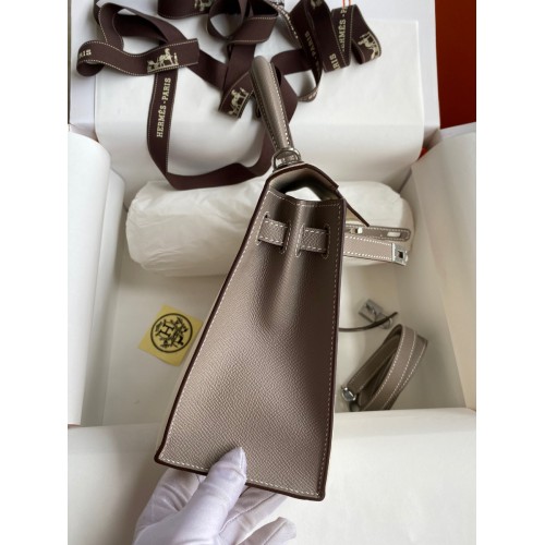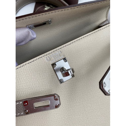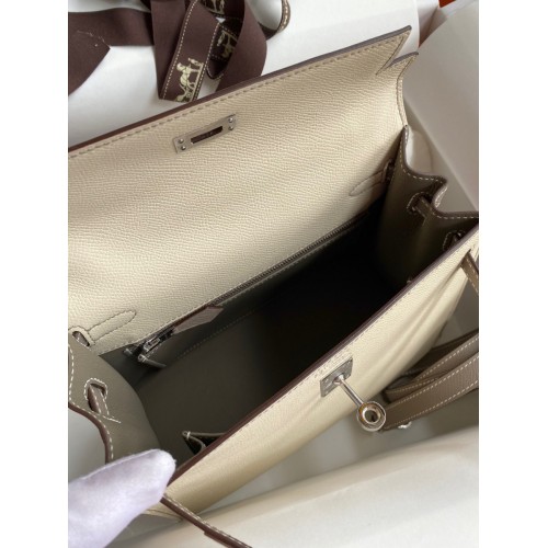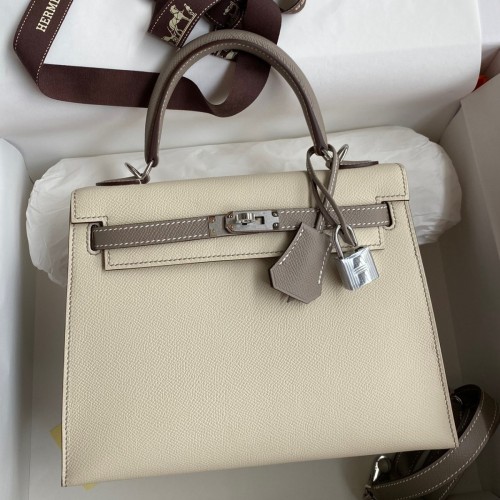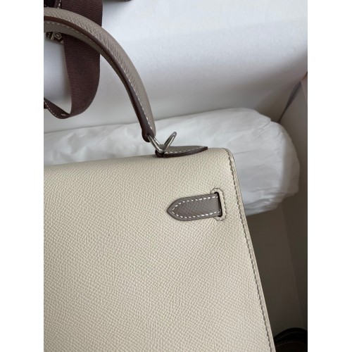 Hermes Kelly Sellier 25 Bicolor Bag in Taupe and Craie Epsom Calfskin