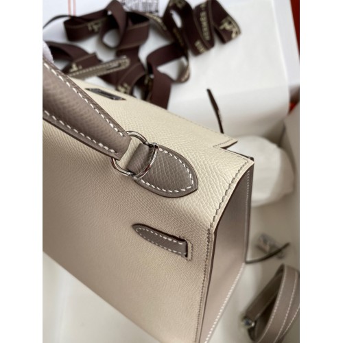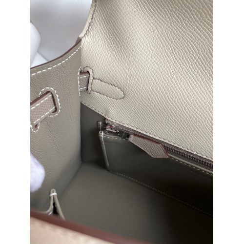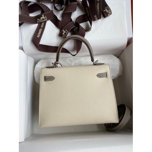 Hermes Kelly Sellier 25 Bicolor Bag in Craie and Gris Mouette Epsom Calfskin