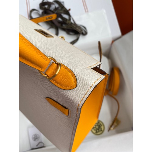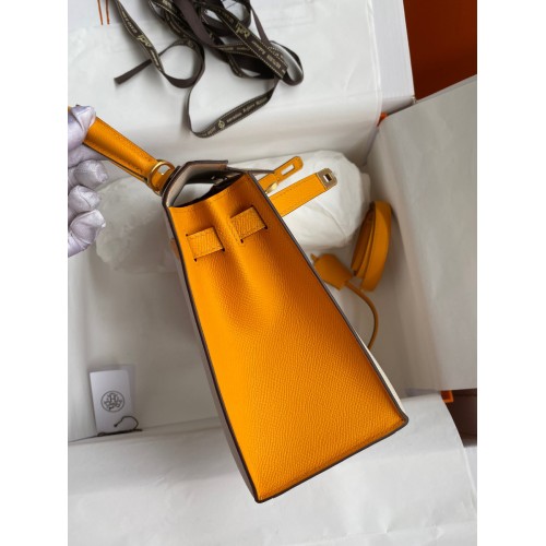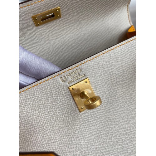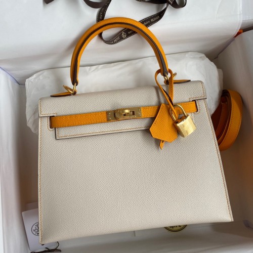 Hermes Kelly Sellier 25 Bicolor Bag in Craie and Yellow Epsom Calfskin