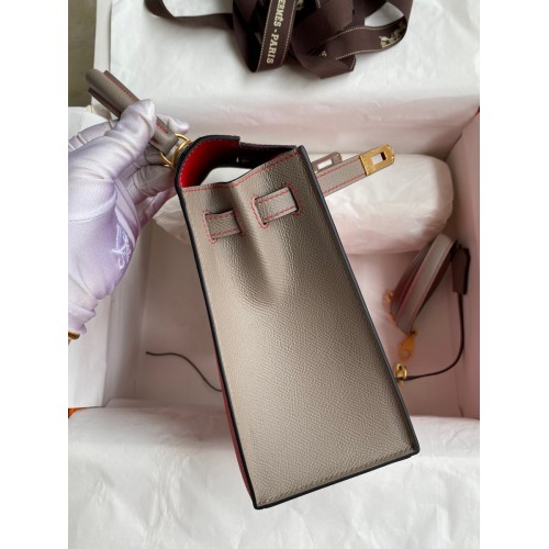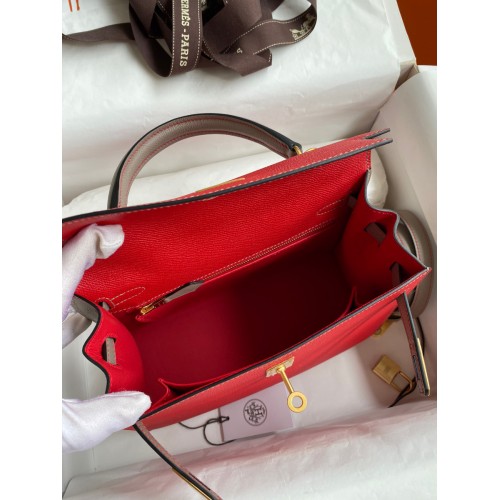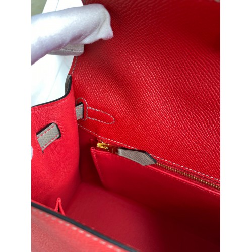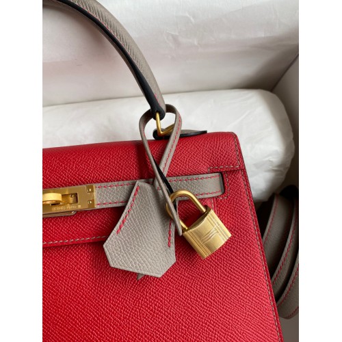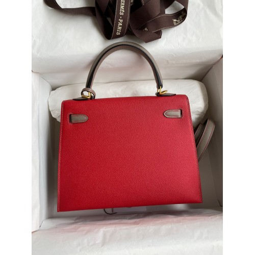 Hermes Kelly Sellier 25 Bicolor Bag in Red and Etain Epsom Calfskin