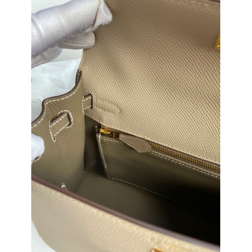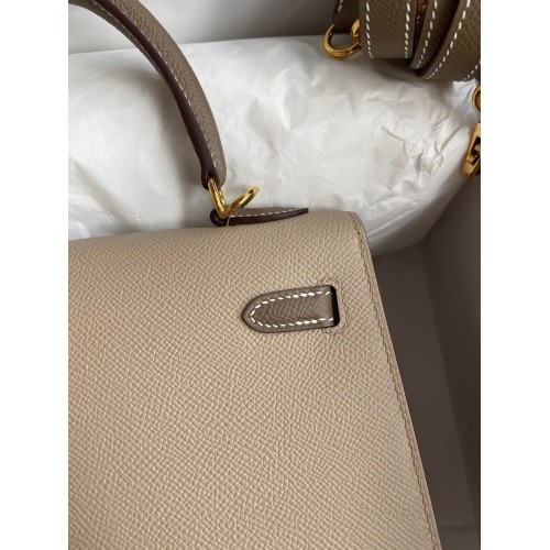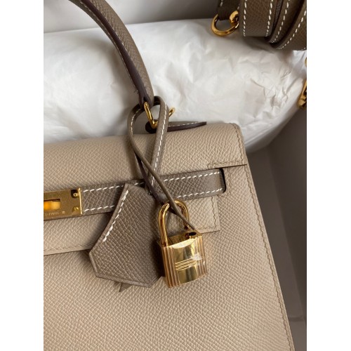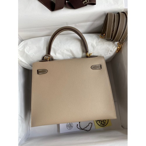 Hermes Kelly Sellier 25 Bicolor Bag in Taupe and Craie Epsom Calfskin