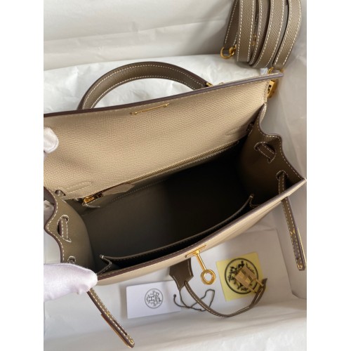 Hermes Kelly Sellier 25 Bicolor Bag in Trench and Taupe Epsom Calfskin