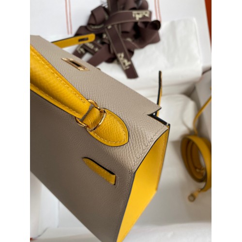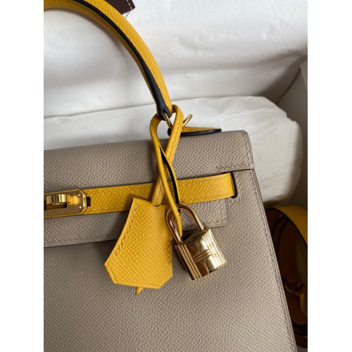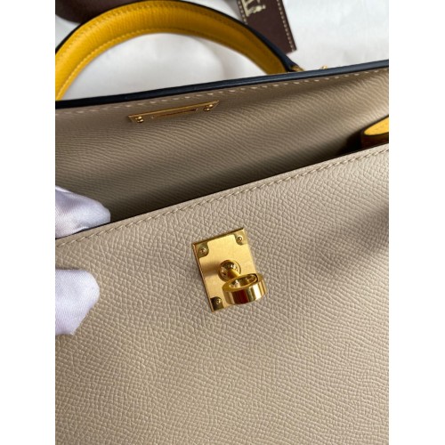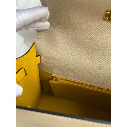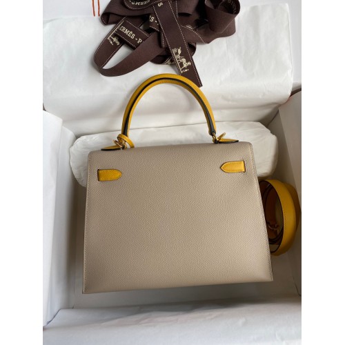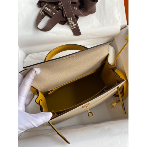 Hermes Kelly Sellier 25 Bicolor Bag in Craie and Yellow Epsom Calfskin