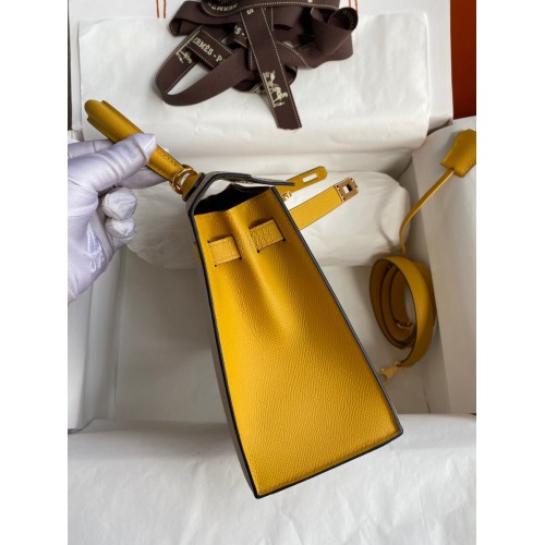 Hermes Kelly Sellier 25 Bicolor Bag in Trench and Yellow Epsom Calfskin