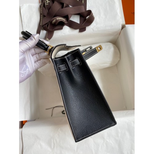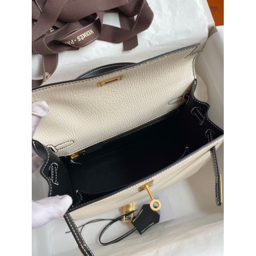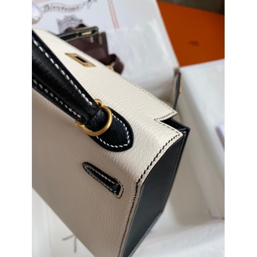 Hermes Kelly Sellier 25 Bicolor Bag in White and Black Mysore Goatskin