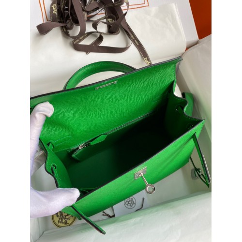 Hermes Kelly Sellier 25 Handmade Bag In Bambou Epsom Calfskin