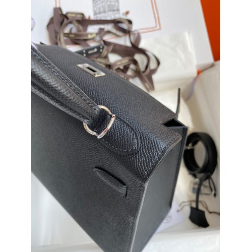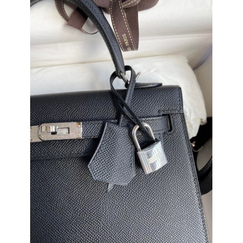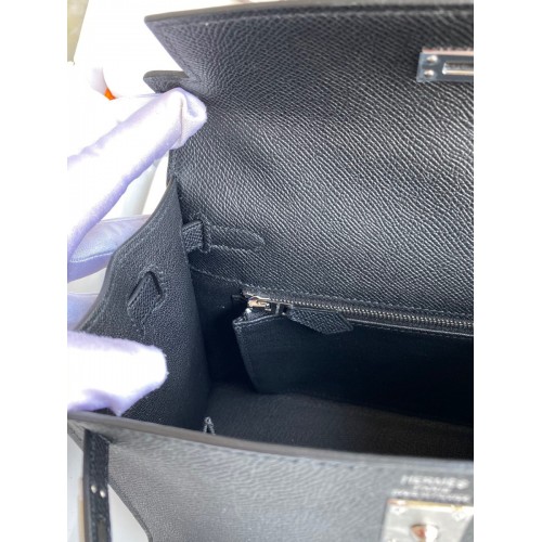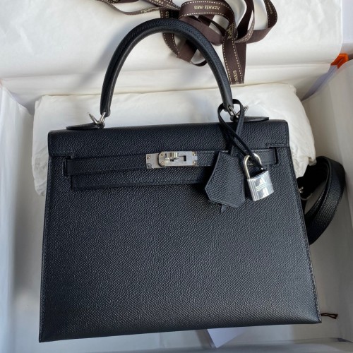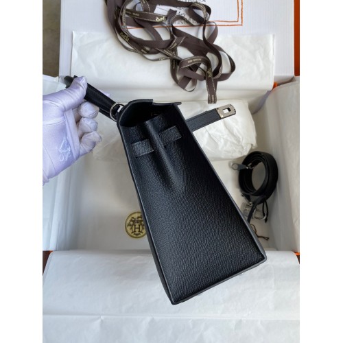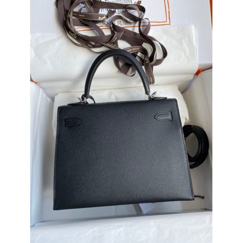 Hermes Kelly Sellier 25 Handmade Bag In Black Epsom Calfskin