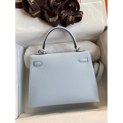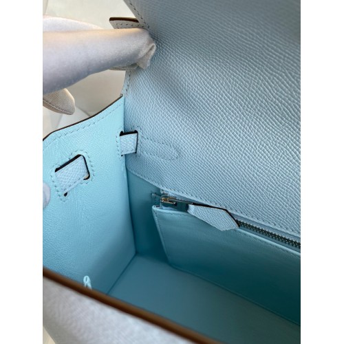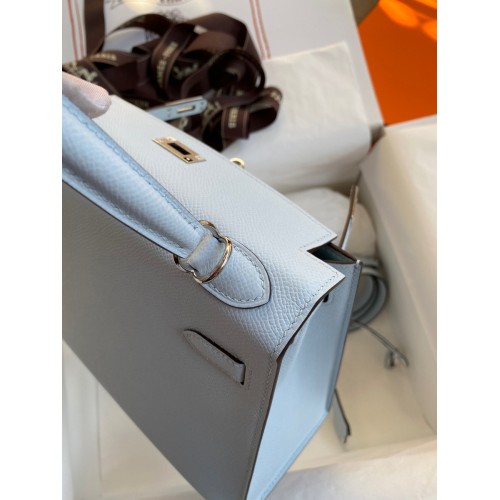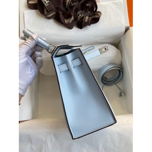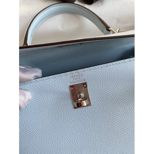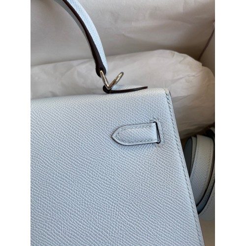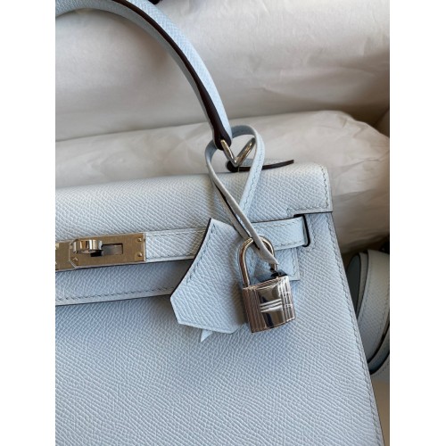 Hermes Kelly Sellier 25 Handmade Bag In Blue Brume Epsom Calfskin
