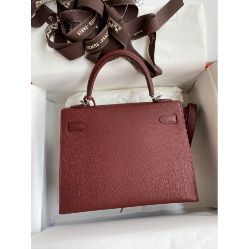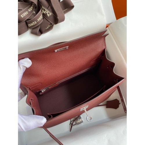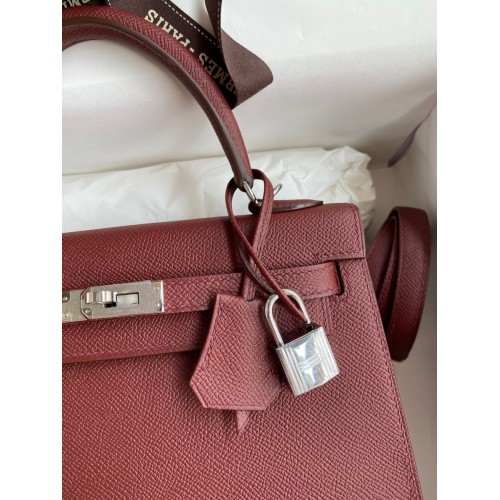 Hermes Kelly Sellier 25 Handmade Bag In Bordeaux Epsom Calfskin