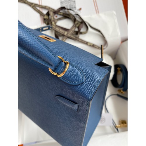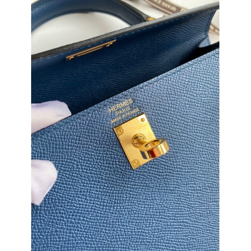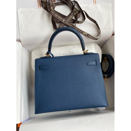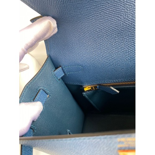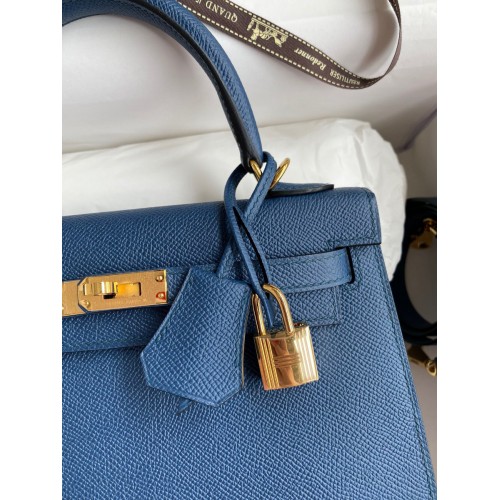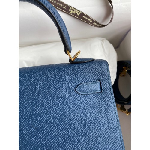 Hermes Kelly Sellier 25 Handmade Bag In Deep Blue Epsom Calfskin