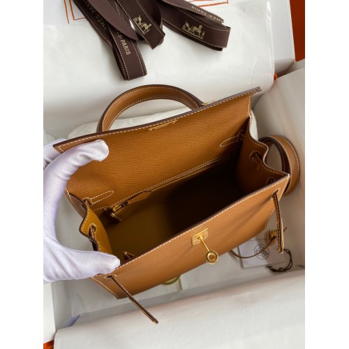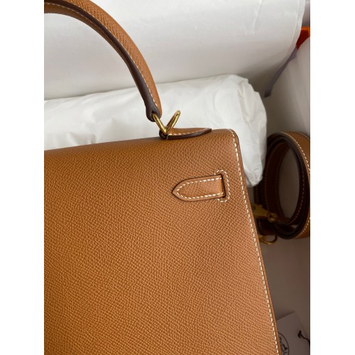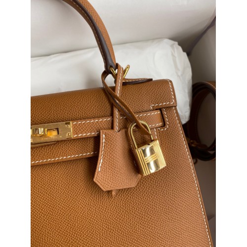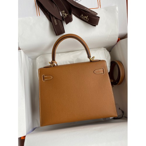 Hermes Kelly Sellier 25 Handmade Bag In Gold Epsom Calfskin