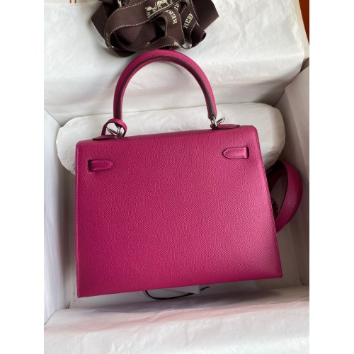 Hermes Kelly Sellier 25 Handmade Bag In Rose Purple Epsom Calfskin