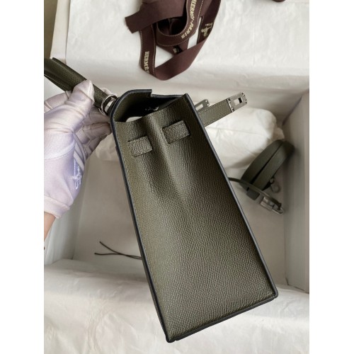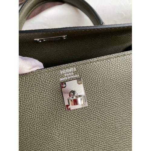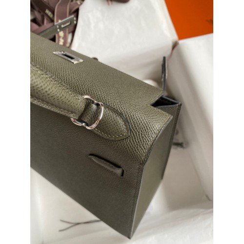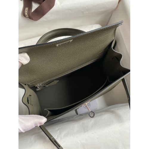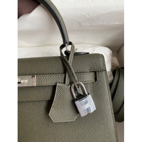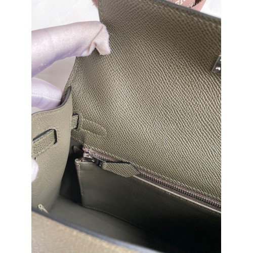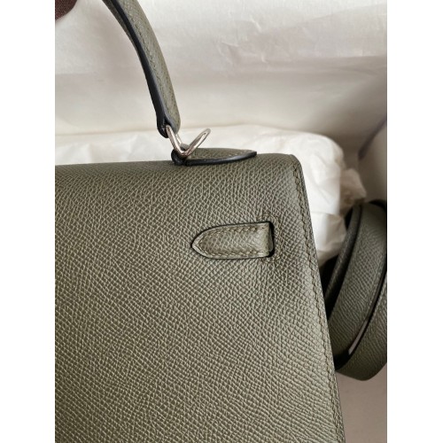 Hermes Kelly Sellier 25 Handmade Bag In Vert De Gris Epsom Calfskin