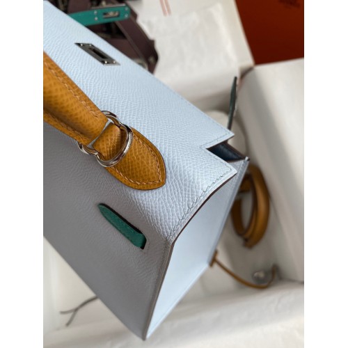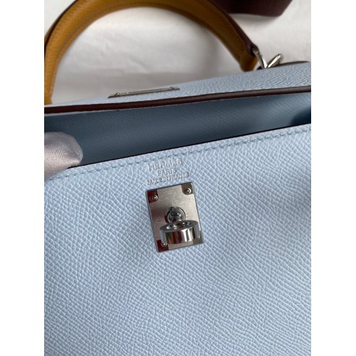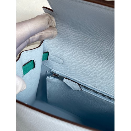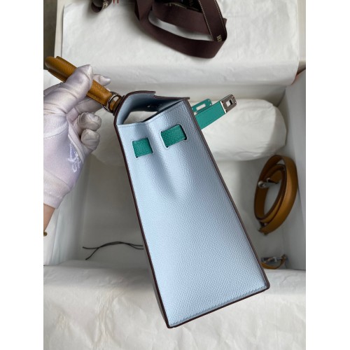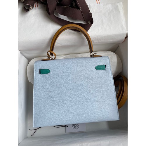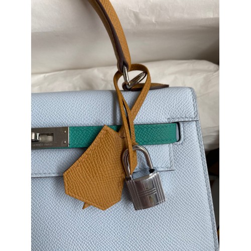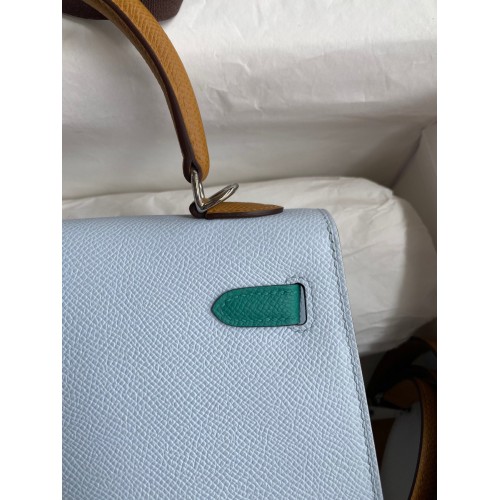 Hermes Kelly Sellier 25 Tricolor Bag in Blue/Green/SesameEpsom Calfskin