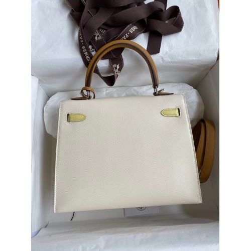 Hermes Kelly Sellier 25 Tricolor Bag in Craie/Sesame/Yellow Epsom Calfskin