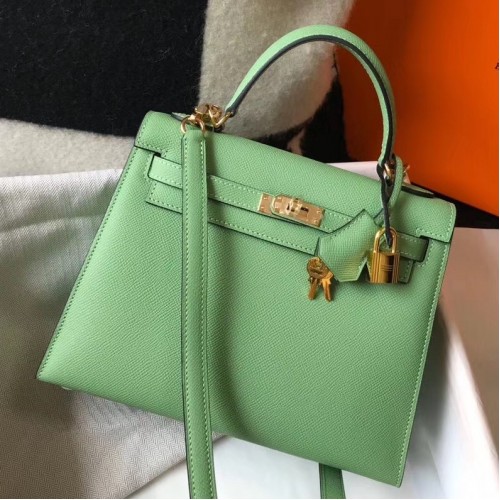 Hermes Kelly 28cm Bag In Vert Amande Epsom Leather GHW