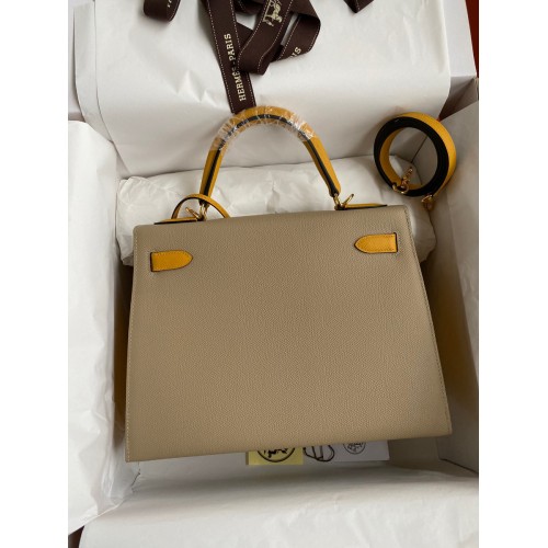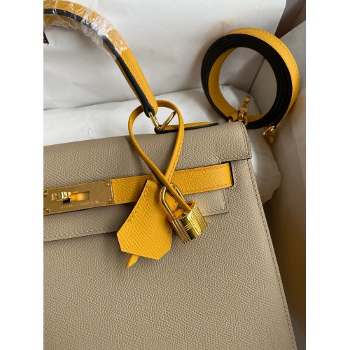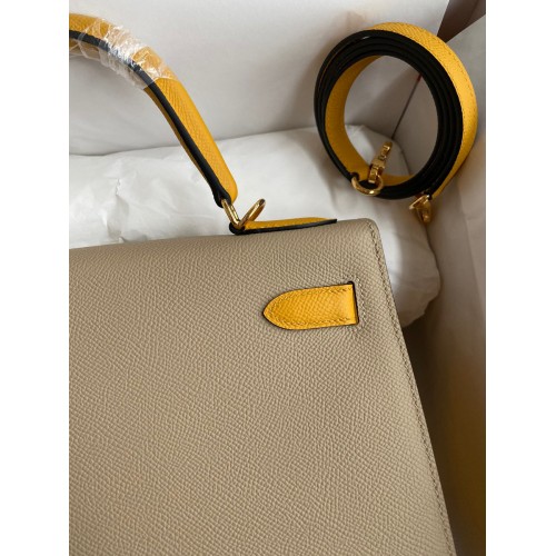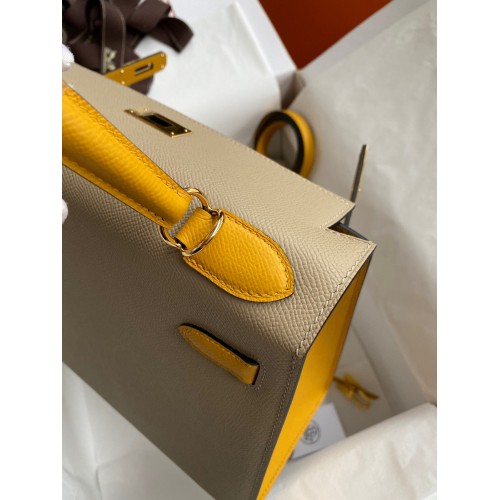 Hermes Kelly Sellier 28 Bicolor Bag in Trench and Yellow Epsom Calfskin