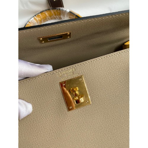 Hermes Kelly Sellier 28 Bicolor Bag in Trench and Gold Epsom Calfskin