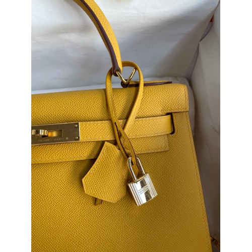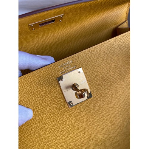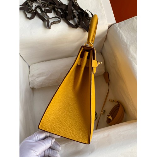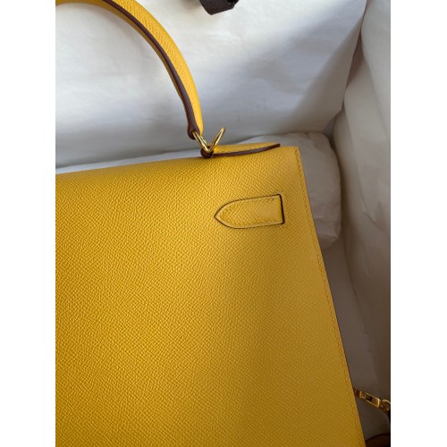 Hermes Kelly Sellier 28 Handmade Bag In Jaune Ambre Epsom Calfskin