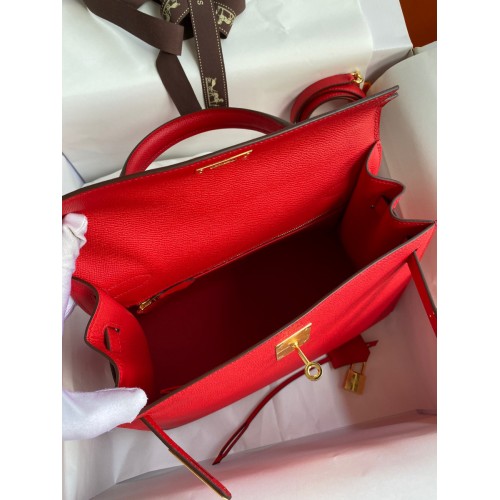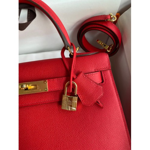 Hermes Kelly Sellier 28 Handmade Bag In Red Epsom Calfskin