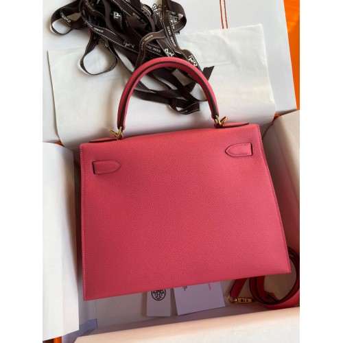 Hermes Kelly Sellier 28 Handmade Bag In Rose Lipstick Epsom Calfskin