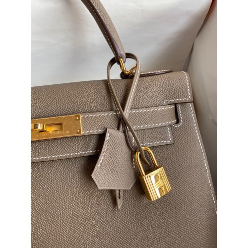 Hermes Kelly Sellier 28 Handmade Bag In Taupe Epsom Calfskin