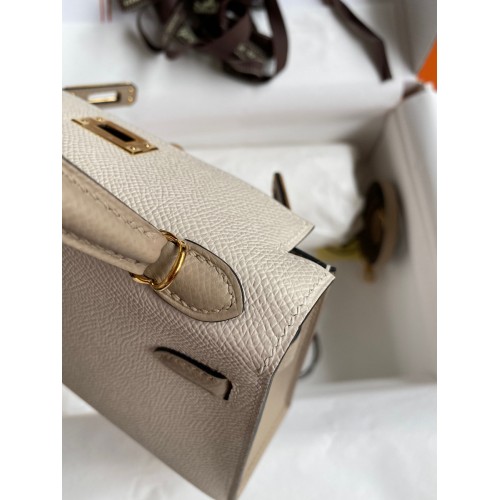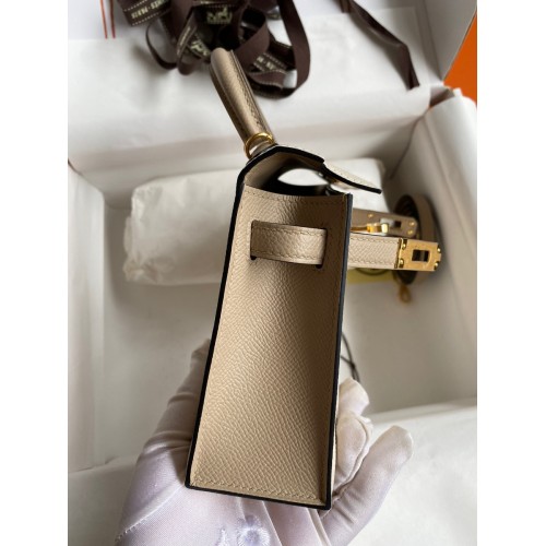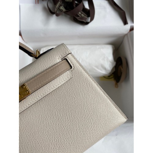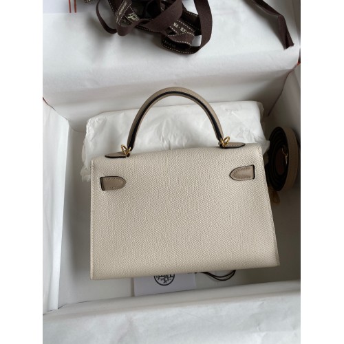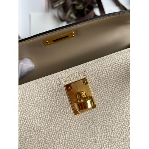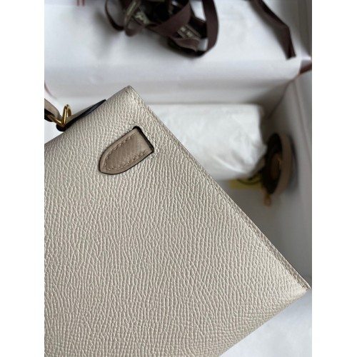 Hermes Kelly Mini II Sellier Bicolor Handmade Bag in Craie and Trench Epsom Calfskin