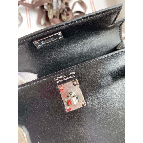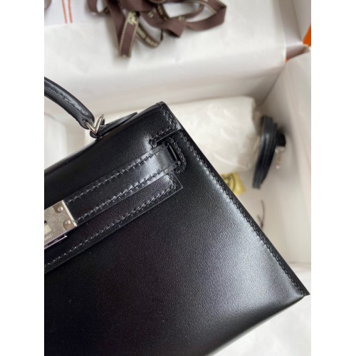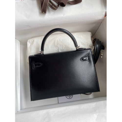 Hermes Kelly Mini II Sellier Handmade Bag In Black Box Calfskin