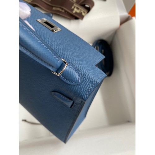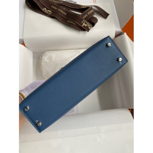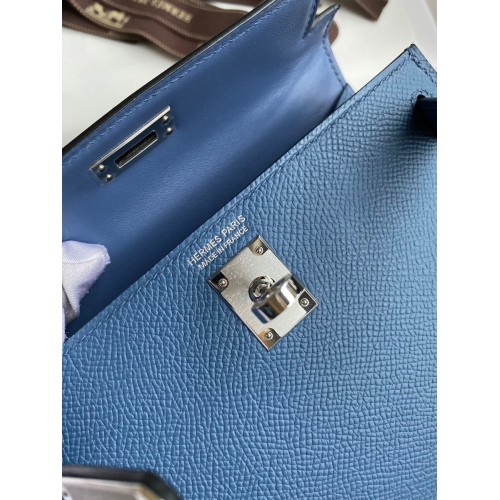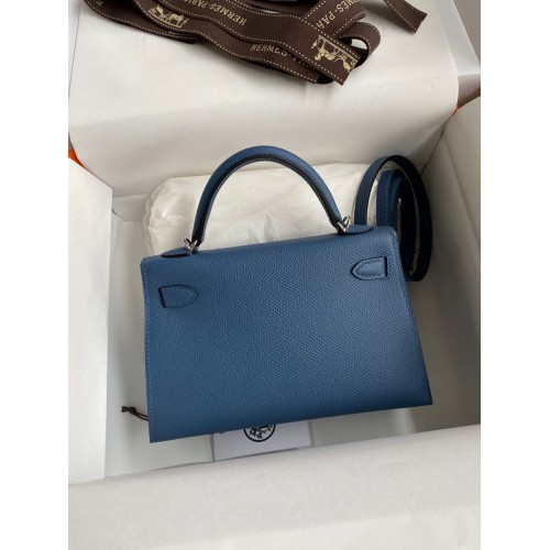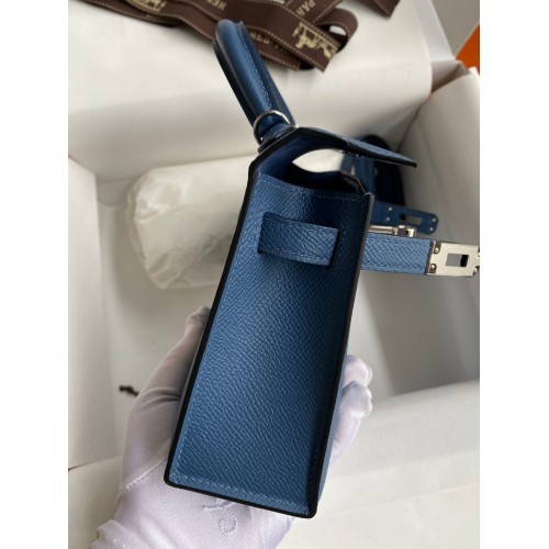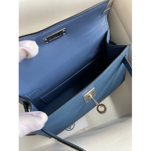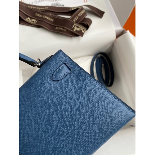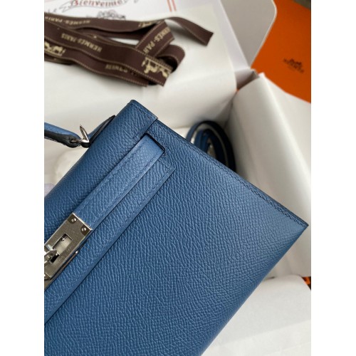 Hermes Kelly Mini II Sellier Handmade Bag In Blue Agate Epsom Calfskin