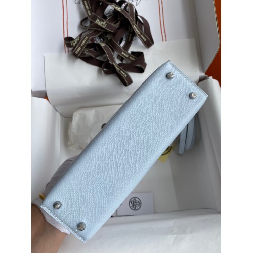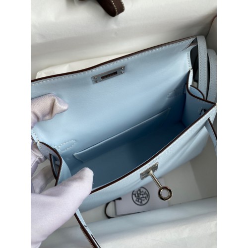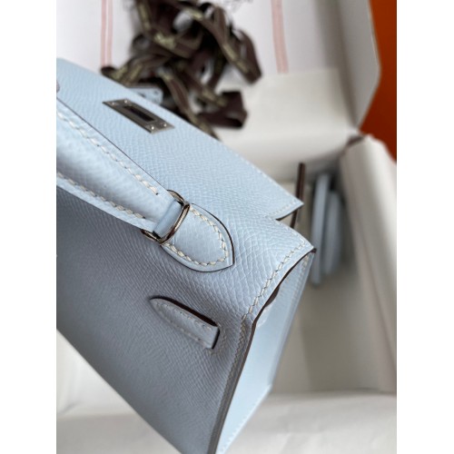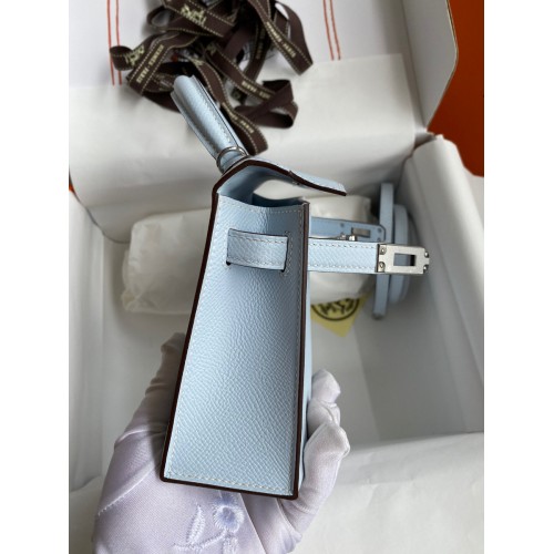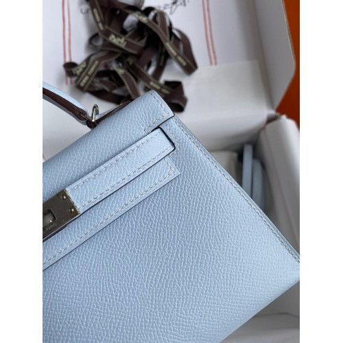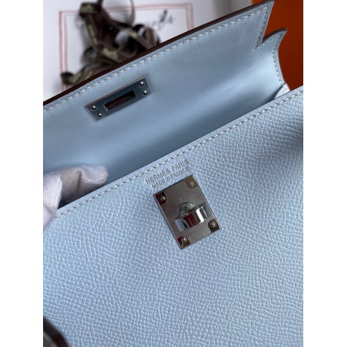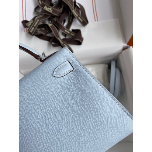 Hermes Kelly Mini II Sellier Handmade Bag In Blue Brume Epsom Calfskin