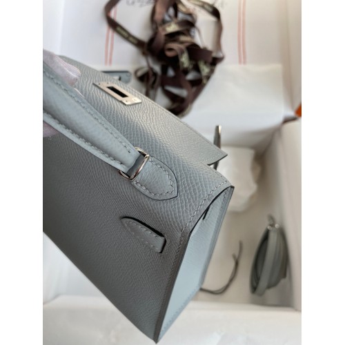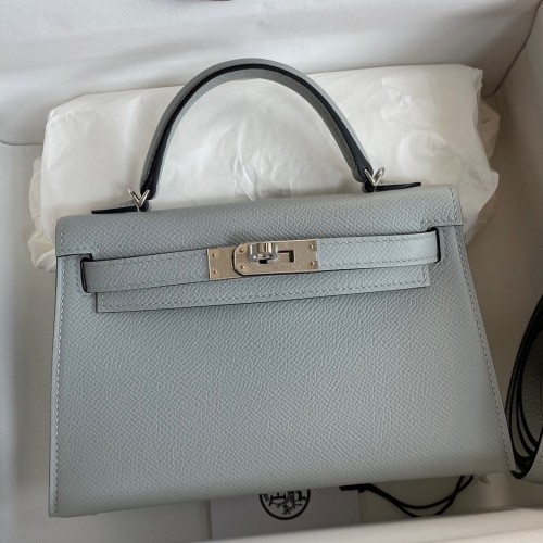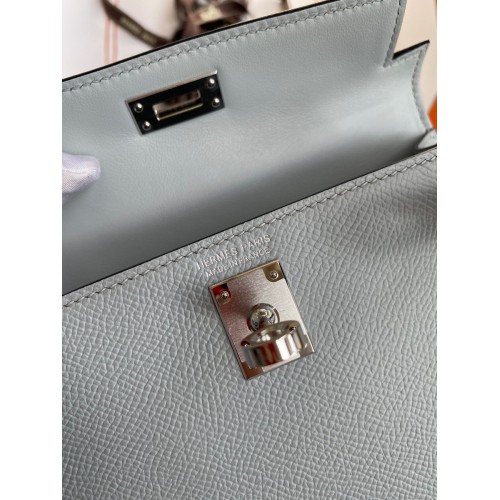 Hermes Kelly Mini II Sellier Handmade Bag In Blue Glacier Epsom Calfskin