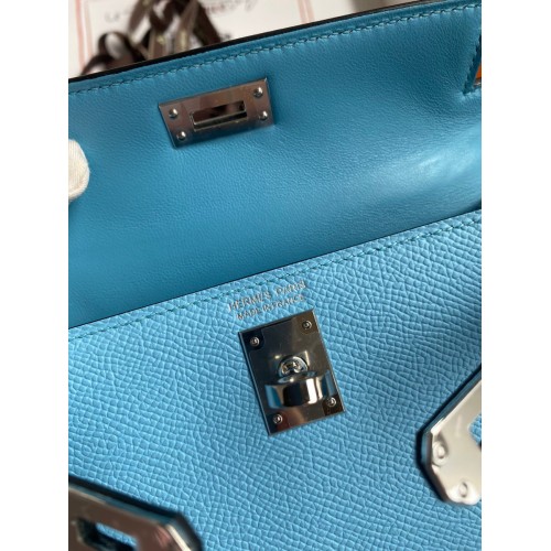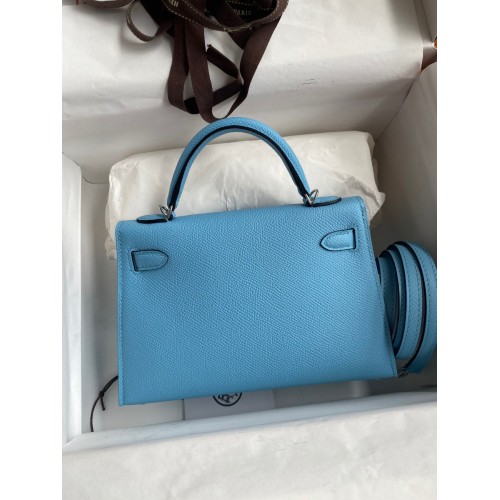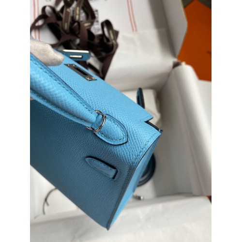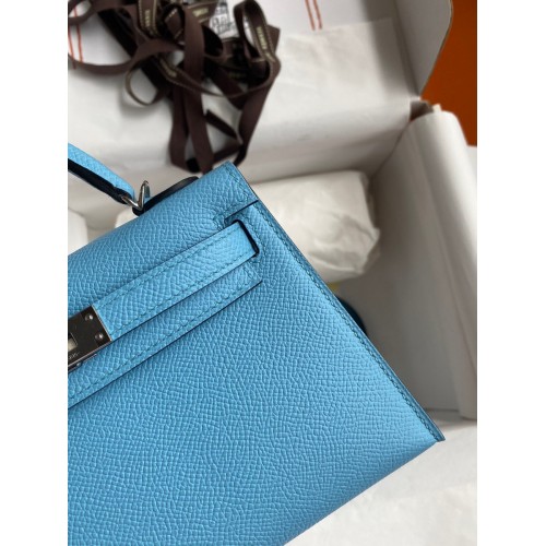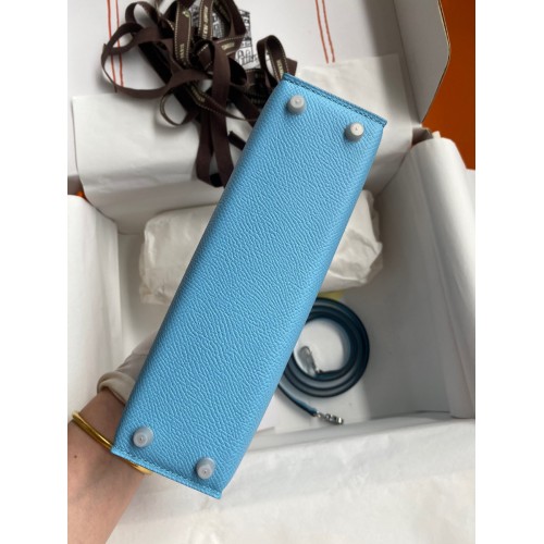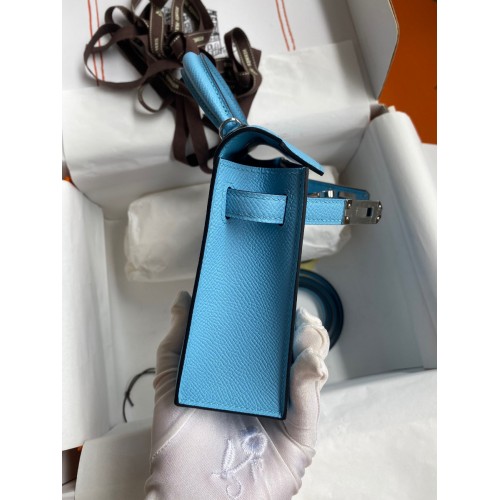 Hermes Kelly Mini II Sellier Handmade Bag In Celeste Epsom Calfskin