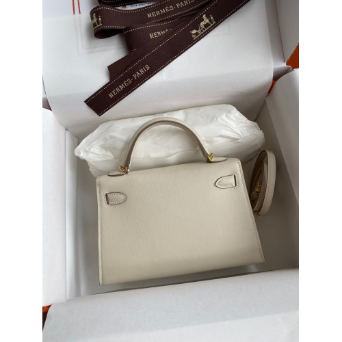 Hermes Kelly Mini II Sellier Handmade Bag In Craie Swift Calfskin