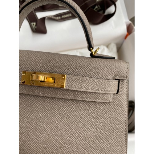 Hermes Kelly Mini II Sellier Handmade Bag In Gris Asphalt Epsom Calfskin