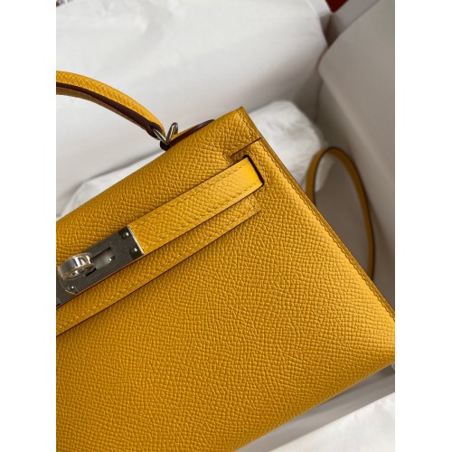 Hermes Kelly Mini II Sellier Handmade Bag In Jaune Ambre Epsom Calfskin
