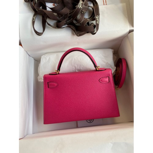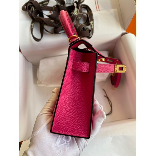 Hermes Kelly Mini II Sellier Handmade Bag In Rose Red Epsom Calfskin