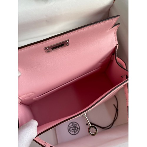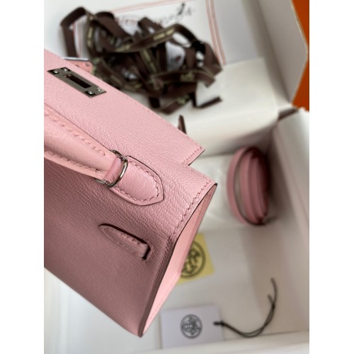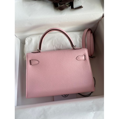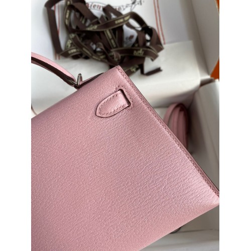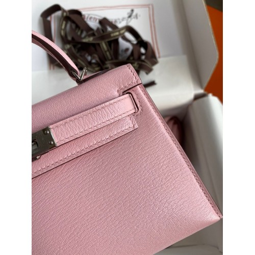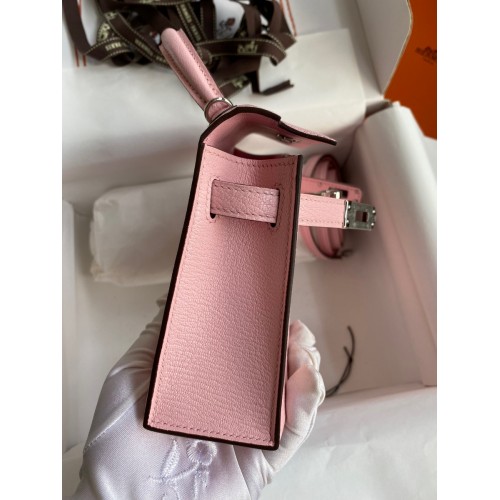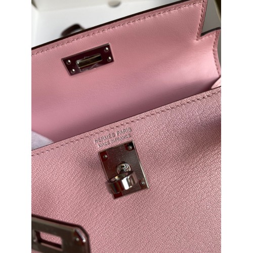 Hermes Kelly Mini II Sellier Handmade Bag In Rose Sakura Chevre Mysore Leather